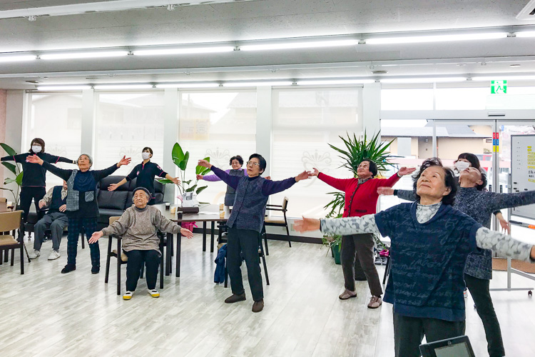運動をメインに行う事により、介護の重度化を防止し、住み慣れた地域、在宅で長く元気に過ごせる支援をしていきます。
