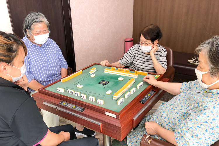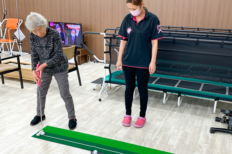 トレーニングマシーン、平行棒、足浴、メドマー、体力測定器、麻雀など、充実の設備とアクティビティで、みんな楽しく身体と脳を動かしています。